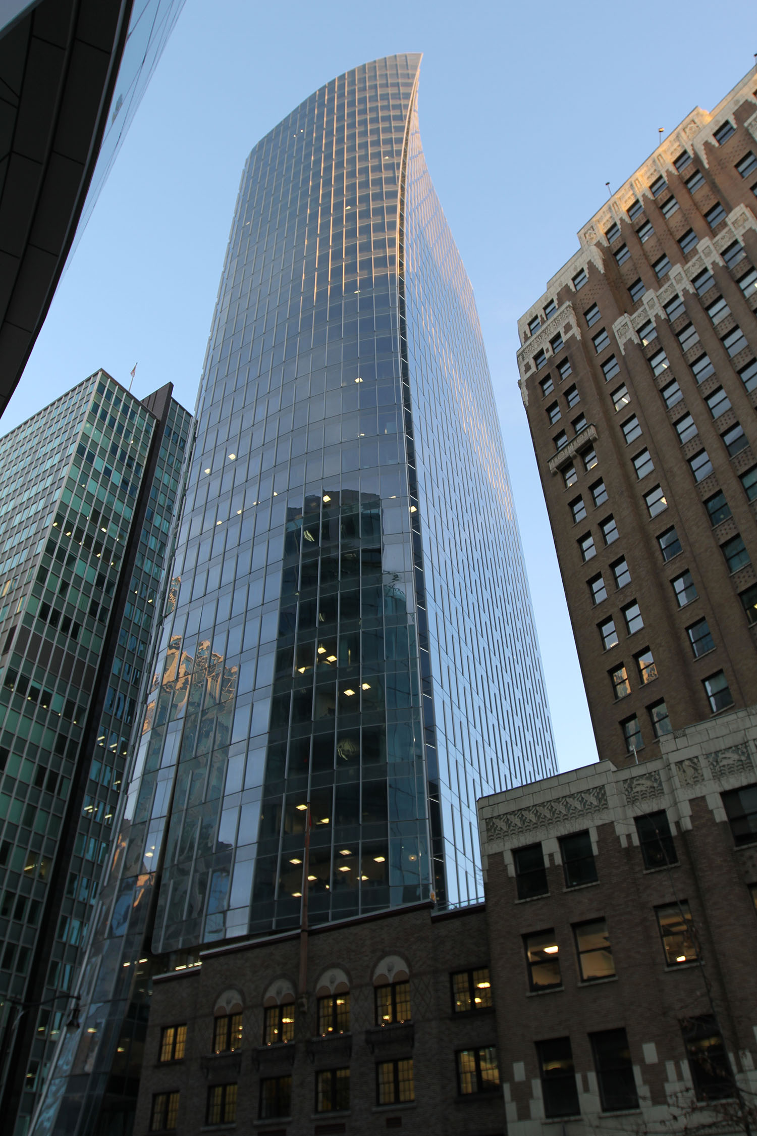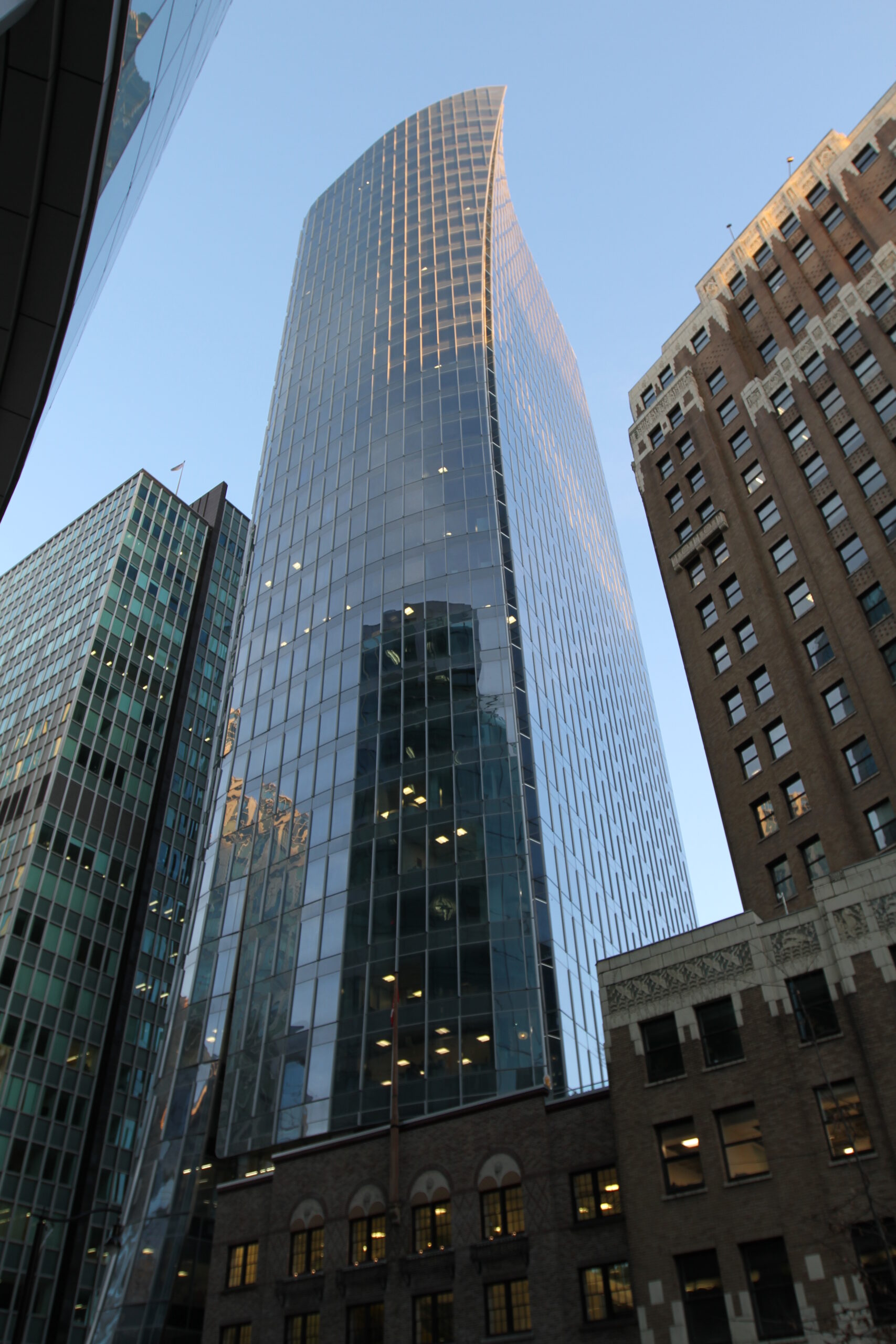 MNP Tower (1021 West Hastings) is a triple A office building located in the harbour district of Vancouver’s business core. The tower has 33 typical office floors and sits on a four level parkade that is continuous under Guinness Tower. At time of construction MNP tower was the sixth tallest building in the city at 470’ (143M).